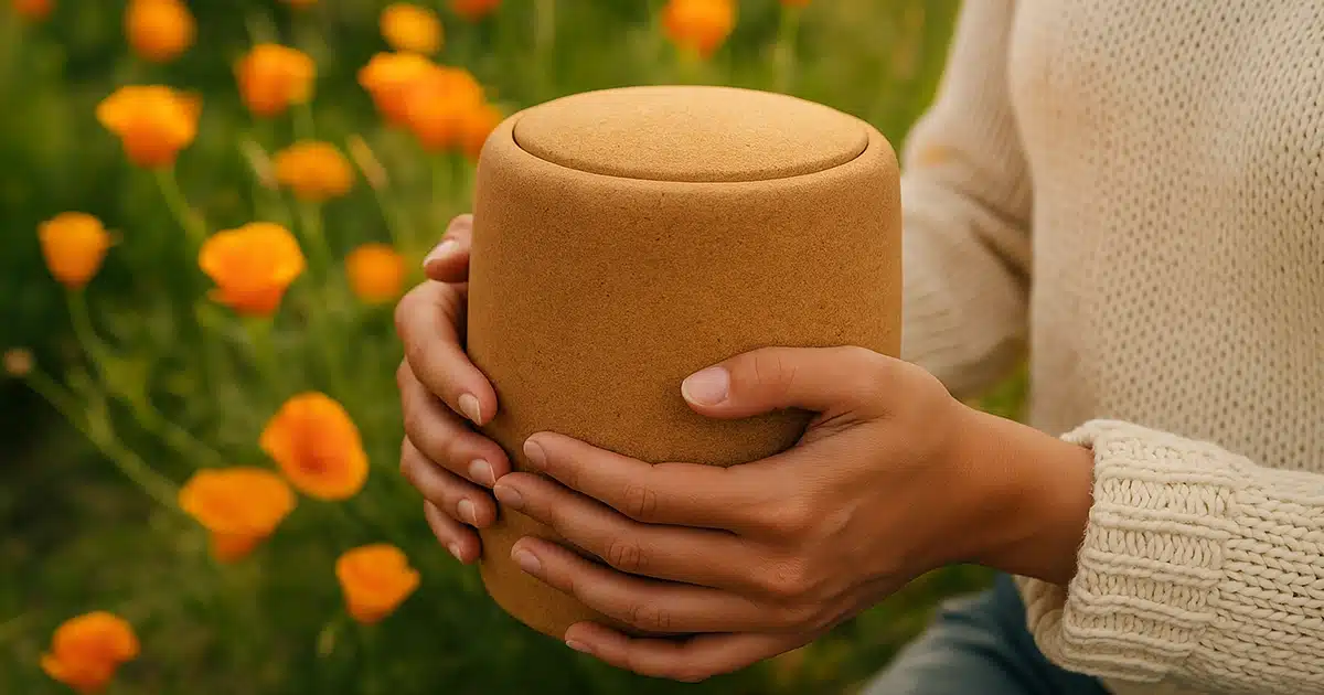 • Biodegradable urns: made of cork, sand, or cardboard, they naturally return to the earth or dissolve in water.